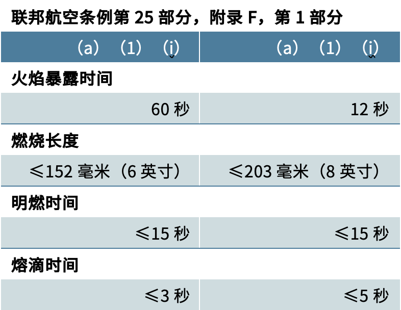 为了确保适航性,大多数国家已采用美国联邦航空管理局(FAA)制定的联邦航空条例(FAR)。与塑料生产商最相关的的是该条例第 25 部分第 853 条关于客舱内饰材料的燃烧测试(“FAR 25.853”)。