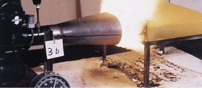 此测试模拟撞机后通过机身引起的燃烧。测试的目的是限制飞机座椅对火灾蔓延和烟雾释放的促进作用。利用煤油燃烧器进行测试。座椅燃烧的质量损失不得超过 10%。
